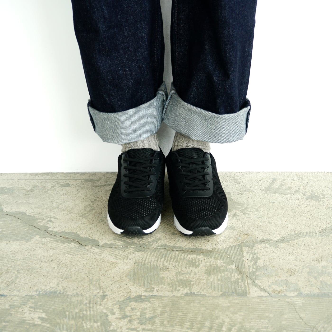 見た目はレースアップのスニーカーですが、この紐の部分がゴム紐になっているので、紐を結んだり、解いたりする手間がかかりません。スリッポンのように楽に履けるスニーカーです。